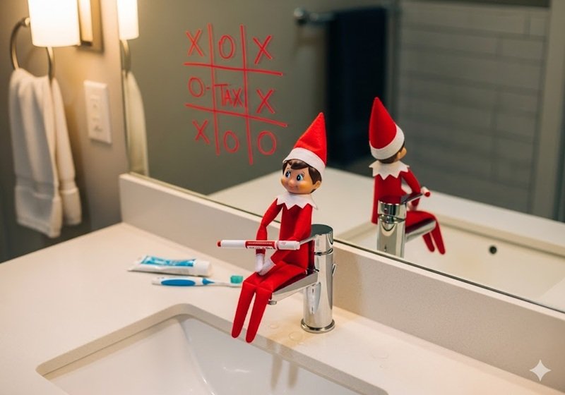 Draw a Tic-Tac-Toe board on the bathroom mirror with a dry-erase marker. Mark an “X” for the elf and leave the marker there for your child to make their move.