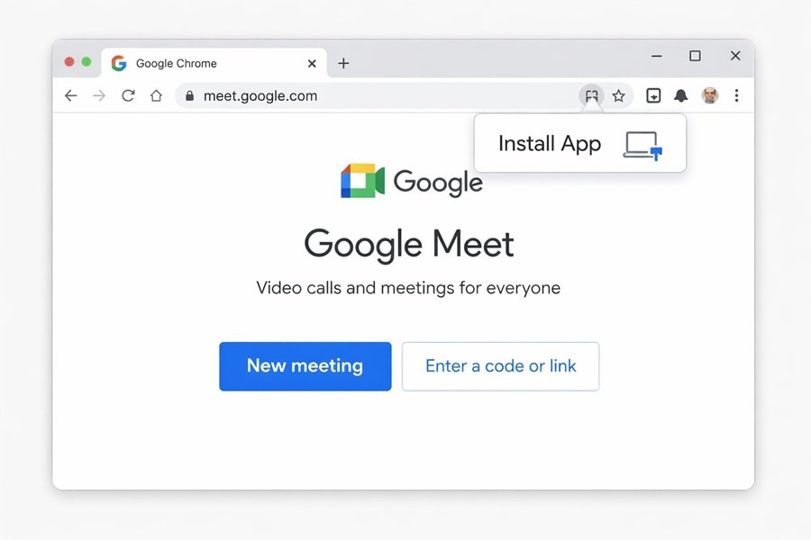 Google Meet’s Progressive Web App (PWA): This gives you a dedicated “app” feel with Google’s built-in AI background blur and light adjustments.