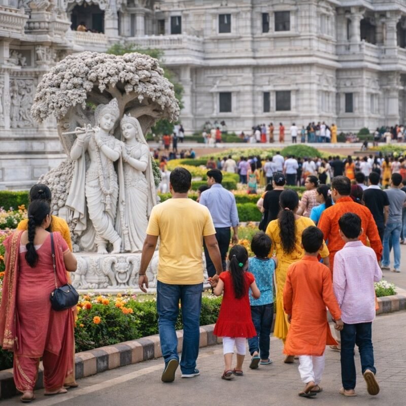 - Architecture: The entire structure is made of Italian Carrara marble. The intricacy of the carvings is stunning. You will see detailed panels depicting the life of Krishna on the exterior walls.